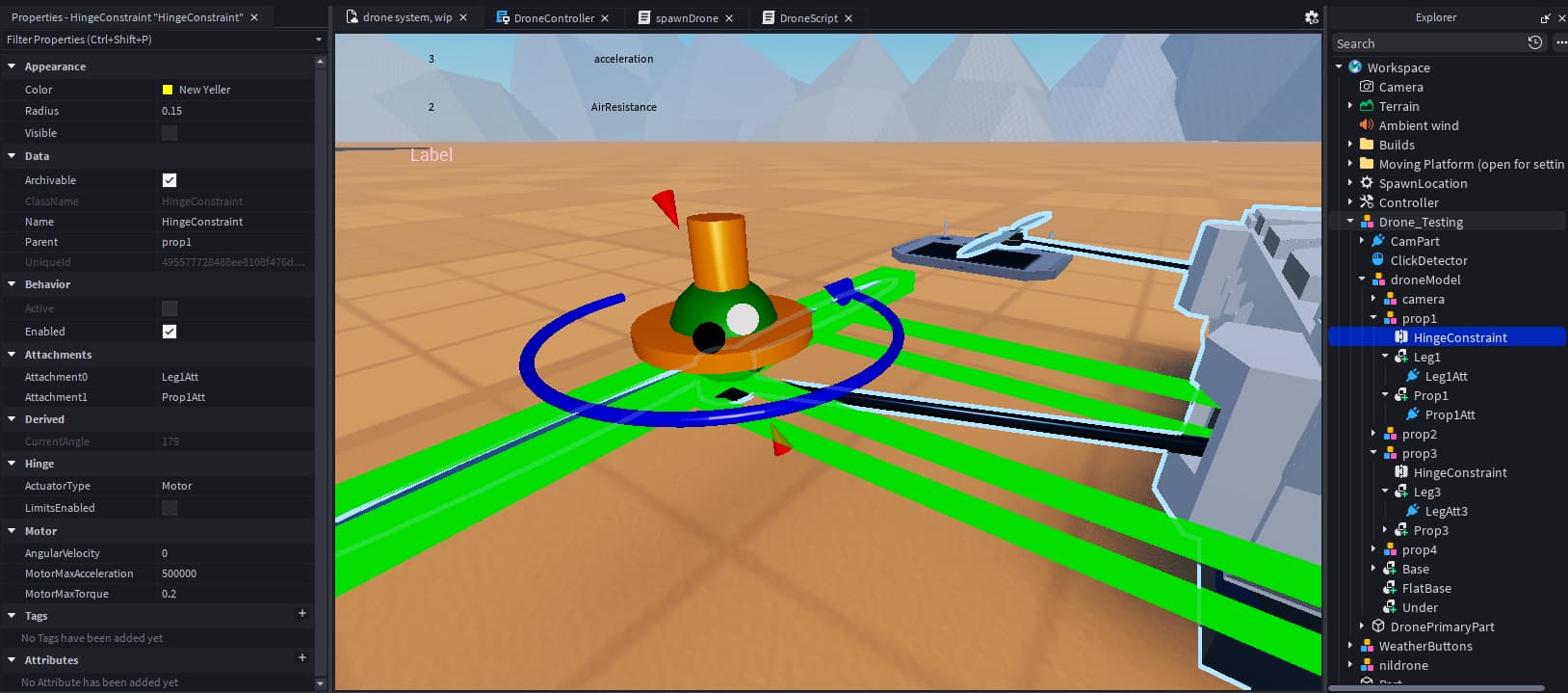 I wanted to use the hingeconstraint because it has angularVelocity and makes a propeller spin effect