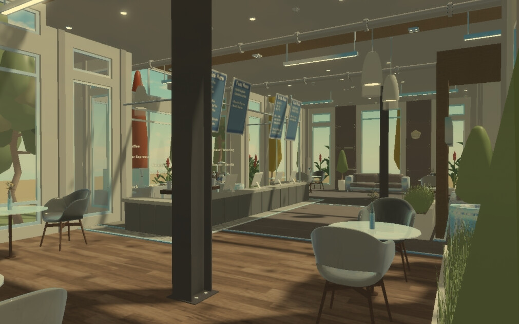 Looking for a medium quality cafe and a medium sized cafe. By the way its donut themed so please make it has something like donuts and etc.