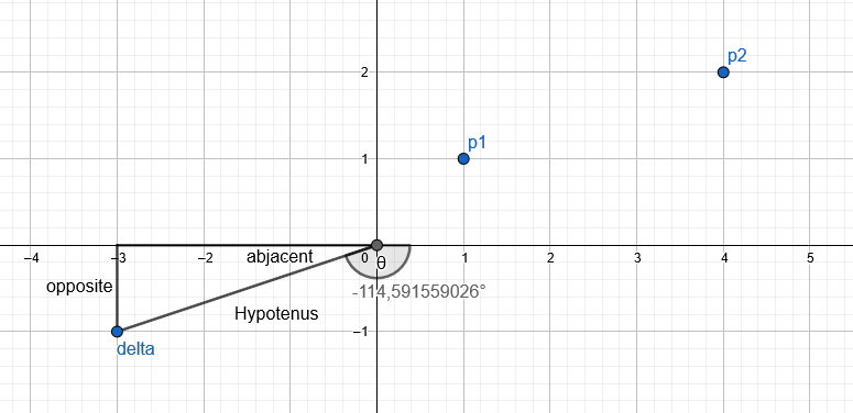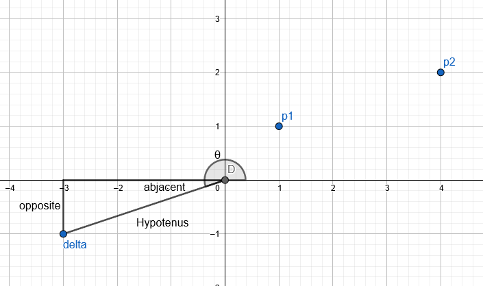 Delta point it’s to make a Right triangle from axis origin for make Trigonometry.