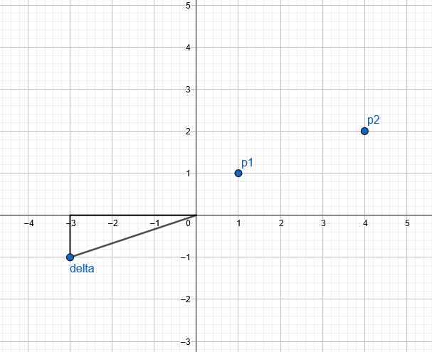 p1-p2=p1(1, 1)-p2(4, 2)=delta(-3, -1)