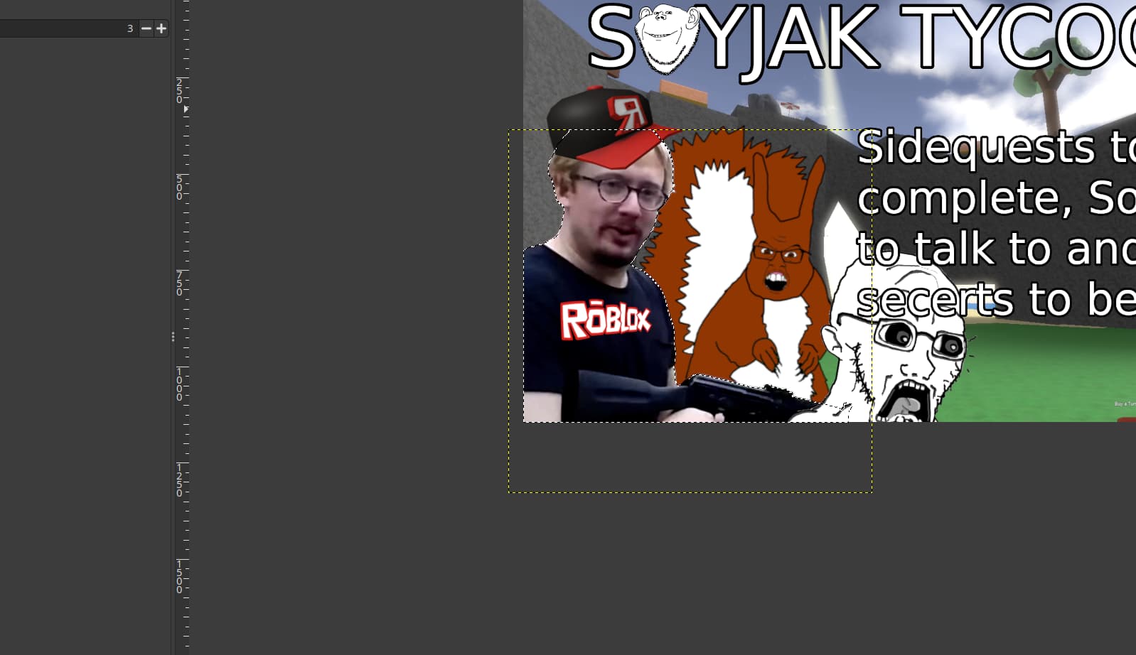 Im going to make sam hyde more of a guest by making his shirt more black with a roblox logo rather than the “Make a free account” thing that only shows up on the back