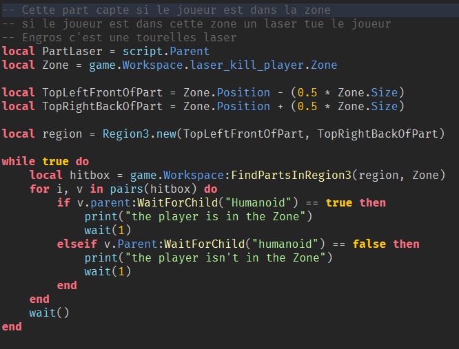 So my goal is to tell to the script when the player is in the zone or not, here is my script :