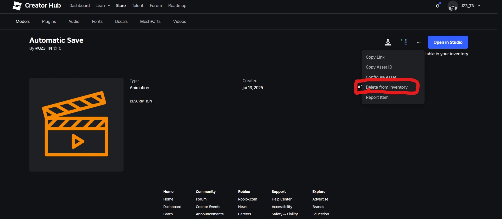 step 2 : click on the unwanted animation, then right click on the 3 dots and click “open in creator store”