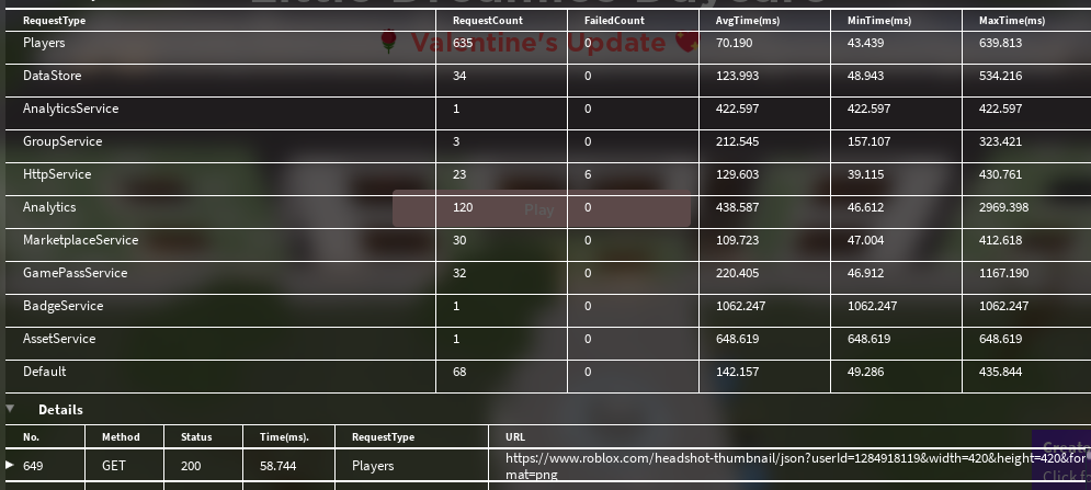 I am trying to figure out why my game has so many requests in a short period of time, and why the client & server memory is so high.