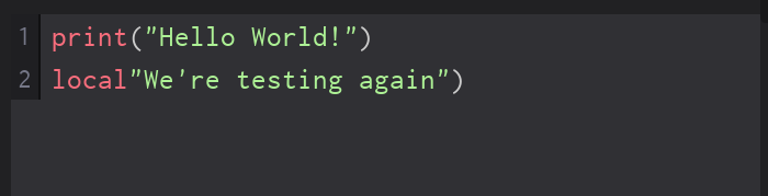 14:25:05.952 local Test = print("We're testing again") - Client - ModuleScript:88