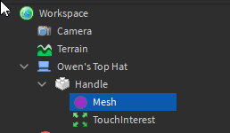 If the actual model doesn’t change, try changing it directly in the mesh properties for said hat. For example, in the explorer open the hat and take a look at the Mesh for it (which I have selected):