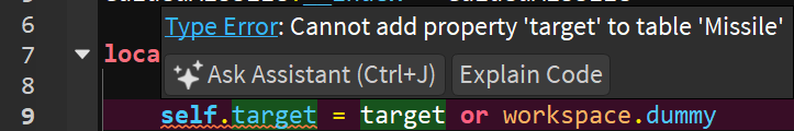 Currently the problem is in the new() function, when I try to add new fields to a Missile: