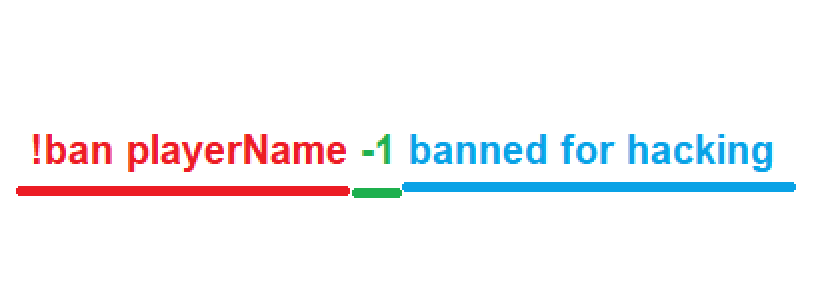 local str = "!ban SomePlayerName -1 Banned for hacking."