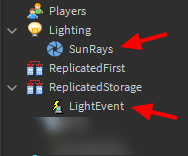 2- You need to create a RemoteEvent and place it inside ReplicatedStorage, name that RemoteEvent “LightEvent”