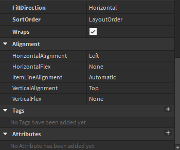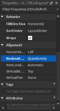 May I see all properties inside UIListLayout I am trying to recreate this in studio to see if there is a possible workaround but everything i have done hasnt lead to me being able to have a basic layout like yours for instance: