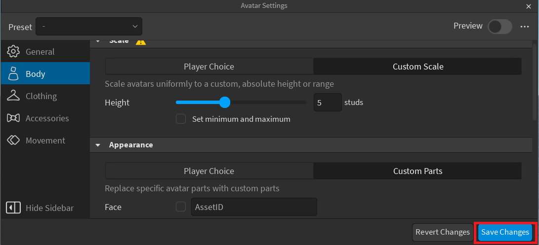 I want to make a blocky body, not just R6