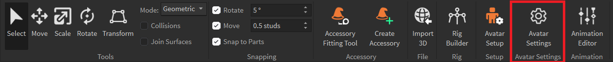 Open the Avatar Tab and Select the “Avatar Settings”