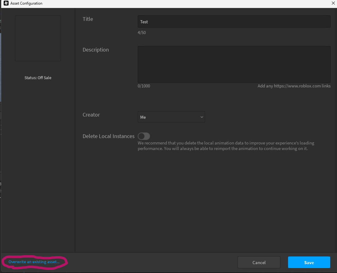 Anytime you go to publish an animation, you’ll see a button called “overwrite an existing asset…”