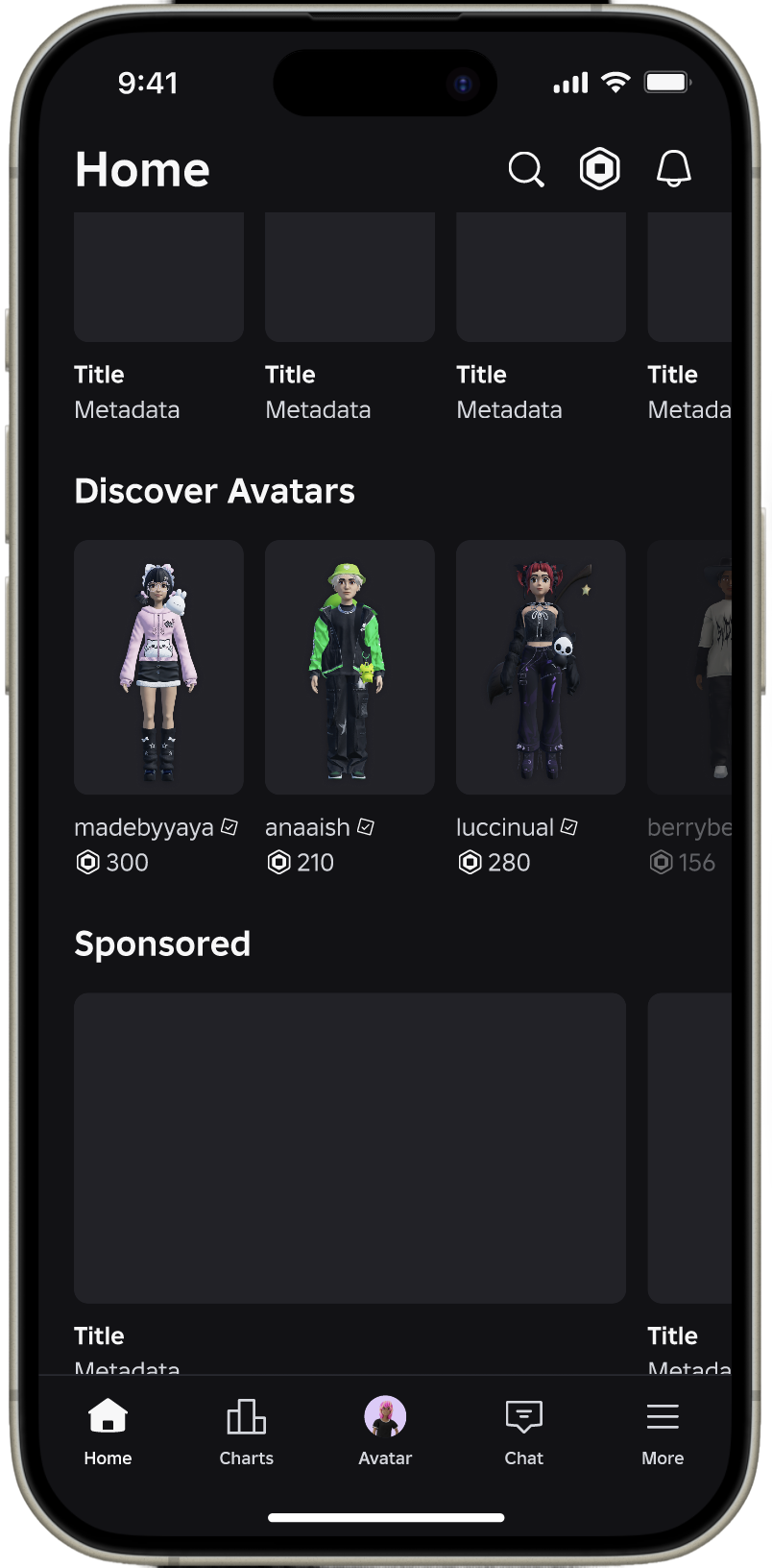 Avatar sort on Home: We are rolling out a new Avatar sort on Home across mobile and desktop. This creates a prominent surface to reach users, enabling them to discover and purchase avatars directly from Home. The sort is fully personalized, including when the sort shows upt, its position, and the avatars shown.