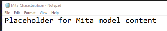 I opened the file you sent earlier as if it was a text file, and it’s contents are simply “Placeholder for Mita model content”