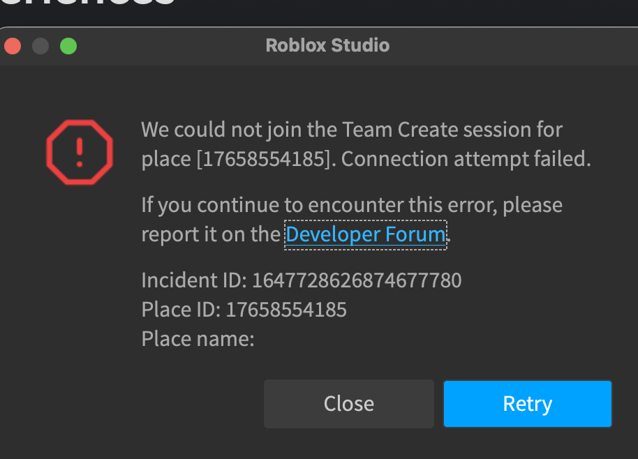 Duplicate of Team Create Place Won’t Open. Please refer to the post for further updates.