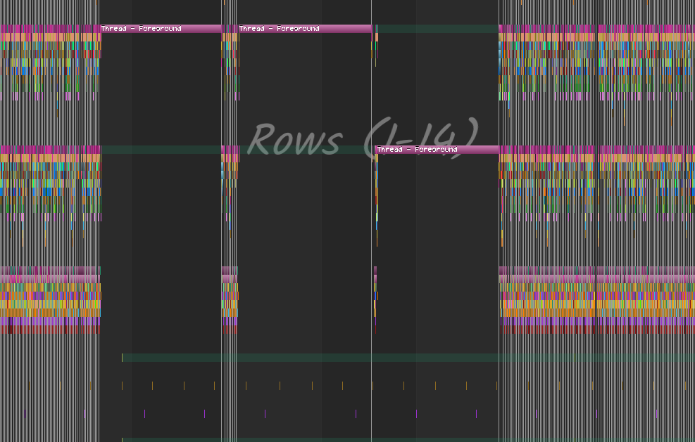 As seen in the video and picture, the random lagspike occurs in the top level Foreground process of the worker thread, which unfortunately provides very little information as to what is causing the lagspike.