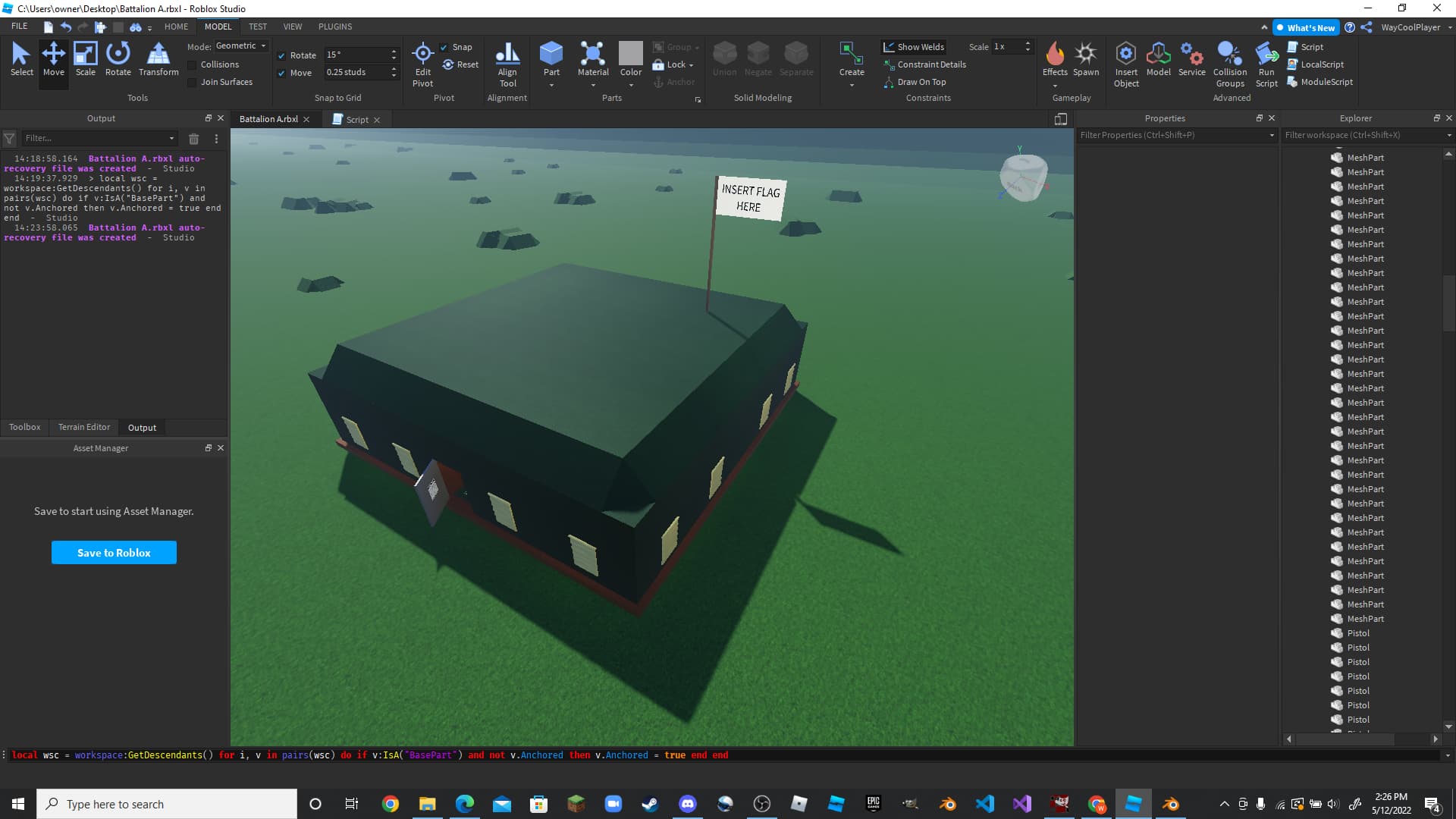 Alright, so I recently started a new project, an FPS game, and that means I have been building. I recently completed what I feel is my best build that I have created so far, a military outpost. Please ignore the quality of the rest of the map in the background, I use a script to make it into terrain so it looks much better than it does in the screenshots.