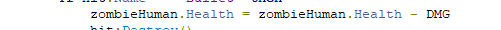 PS: you can use zombieHuman.Health -= DMG to subtract health instead.