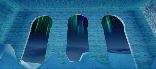 I thought of a scenery that would make me feel comfortable, and this is what I came up with. A nice cozy mansion in the artic sky makes me feel rather relaxed, especially when the magnificent auroras are visible above.