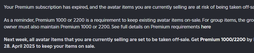 I have Roblox premium and had it cancel after the month is over, I recently put up a LimitedU UGC item, will the item be removed when my premium runs out and if so, would I need to pay the 13,000 Robux again to put it up?