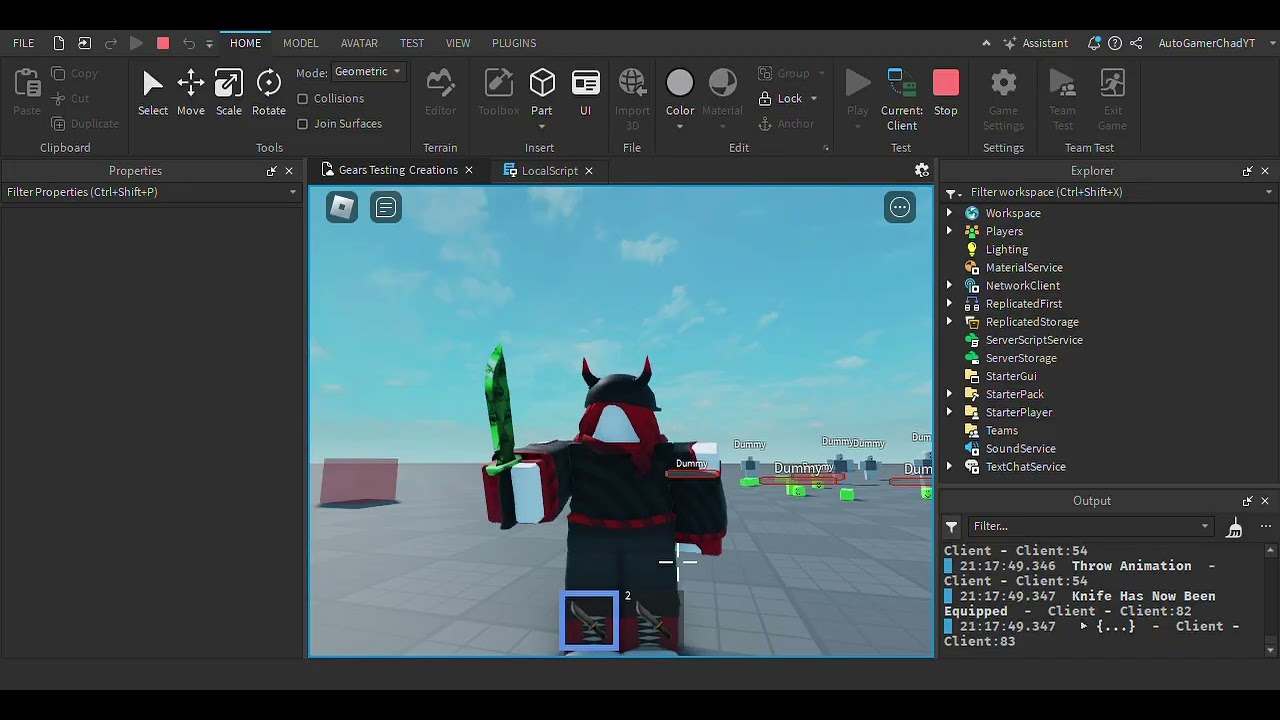 So it is a Knife that is still being worked on you can Stab but it can’t kill when you Stab but I have been really focused on the throwing functions and it is completed along with a new Ability which is “Illuminati” based off the Illuminati Ability from a older roblox game "Twisted Murder. I’d say about 75% of the Knife is completed based off what I want done for it next!