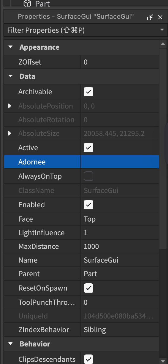 - try the AlwaysOnTop property on the SurfaceGui