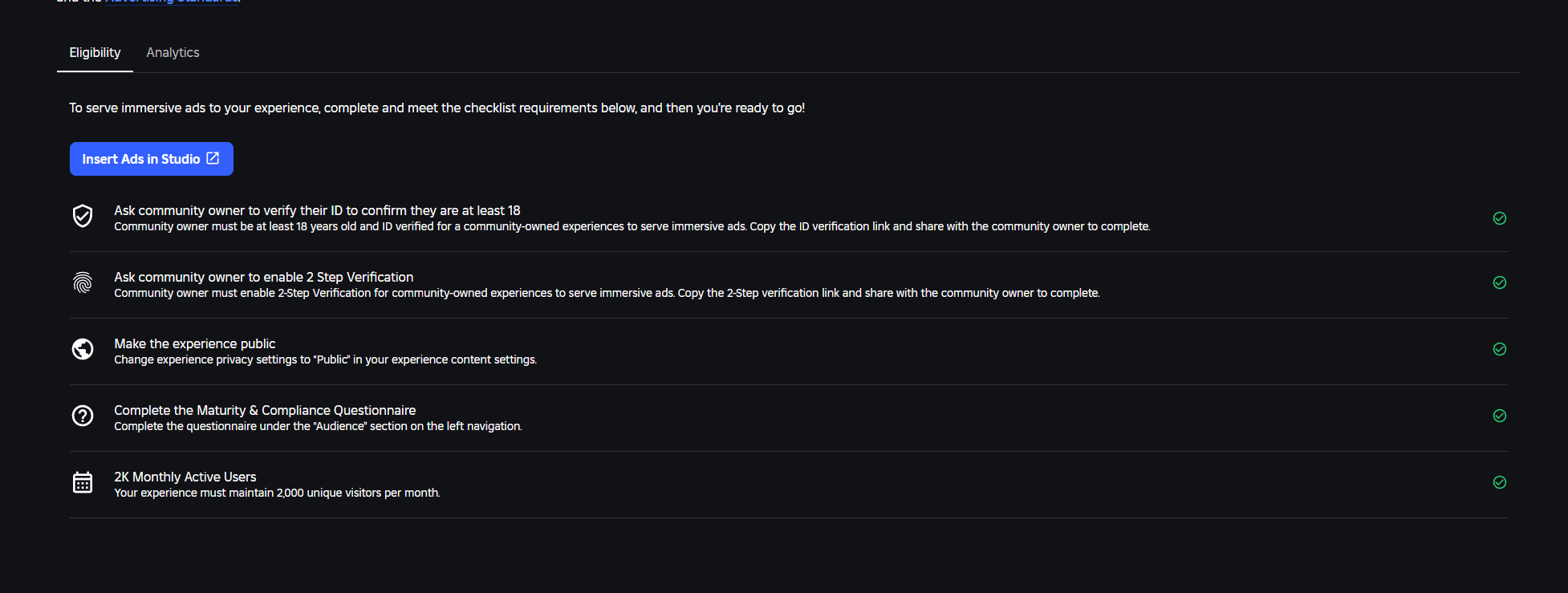 Despite being completely eligible, meeting all the requirements, we are for some reason not having any ads get displayed within our game but when i check other games that have immersive ads enabled, they seem to have no issue with having them loaded.