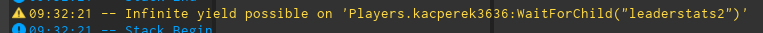 The “leaderstats2” was literally inside the player, i’m really confused why and how this error appeared: