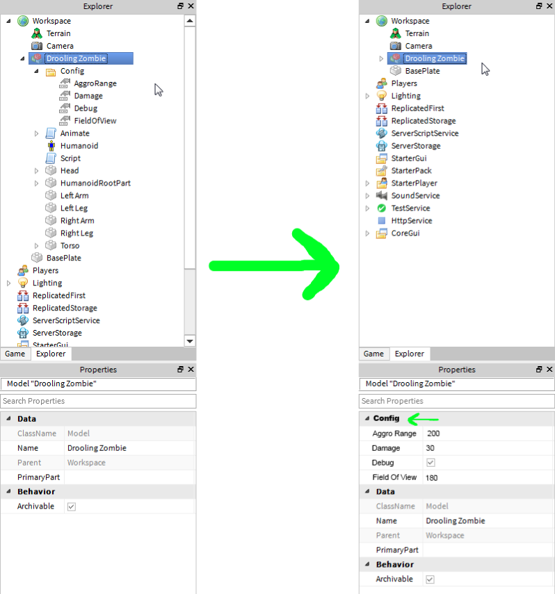 Currently if you have a public model that you want to be configurable , you have to use value objects for settings so that everyone who’s not fluent in Lua can modify your model. This is not intuitive – you’d expect properties to be in the properties window, and not the explorer, as a new user. What we use is a convention, a tradition, that doesn’t make sense to anyone not familiar with it. “Why don’t they just add it to the properties window with the rest of the properties?” You’d only understand why we use this convention if you make public models yourself and know that we can’t add items to the properties window, but most content consumers are not content creators.
