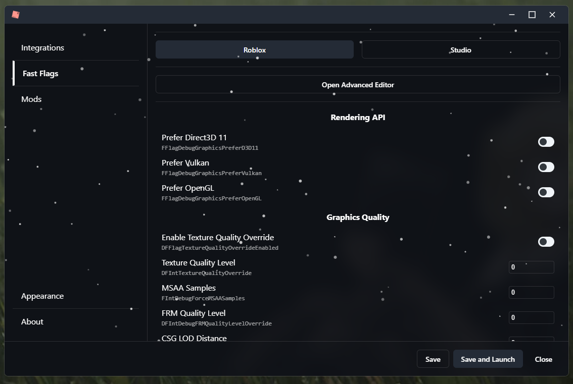 - Roblox Studio Client management includes a larger range of FastFlags as there is no restriction