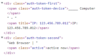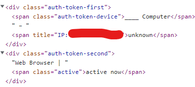 If you are using Google Chrome, go to https://devforum.roblox.com/u/dan_foodz/preferences/security, and press F12 on your keyboard. Then find the HTML code for the devices in the HTML code, and like @NinjaFurfante07 said, the IP address text will be sent to unknown, while the IP address title will be set to the IP address. This means that the only way to find the IP address is looking in the HTML code.