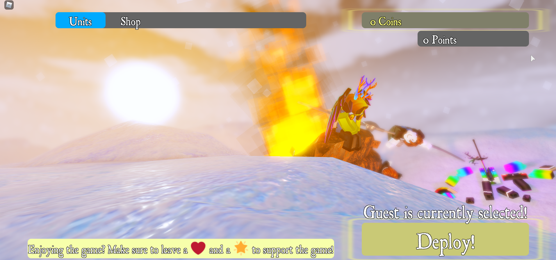Third thing: The main menu appears, and I am utterly confused. The first thing that grabs my eye is the shop menu. But why is the game prompting me to buy things? Do I even have money yet? I go to click the “Units” tab, and find… cards? I assumed that meant the character I would be playing as. Like I said, it was just confusing overall, and I didn’t feel naturally guided by the UI’s layout.