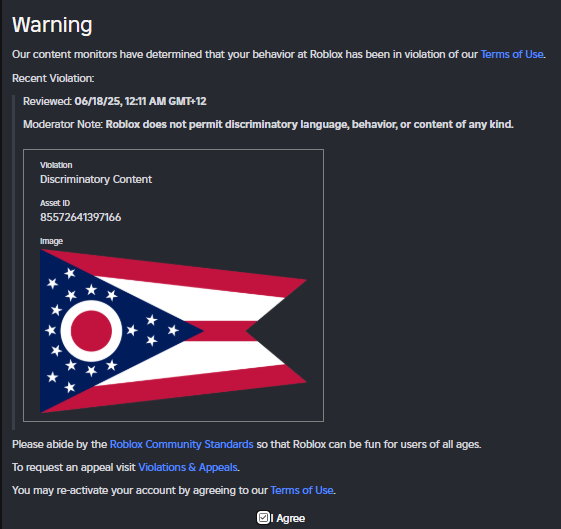 The Betsy Ross flag is not discriminatory in any way, and anyone who just tries to problematize it are just part of the problem. Roblox Moderation is now, without a doubt, bigoted.