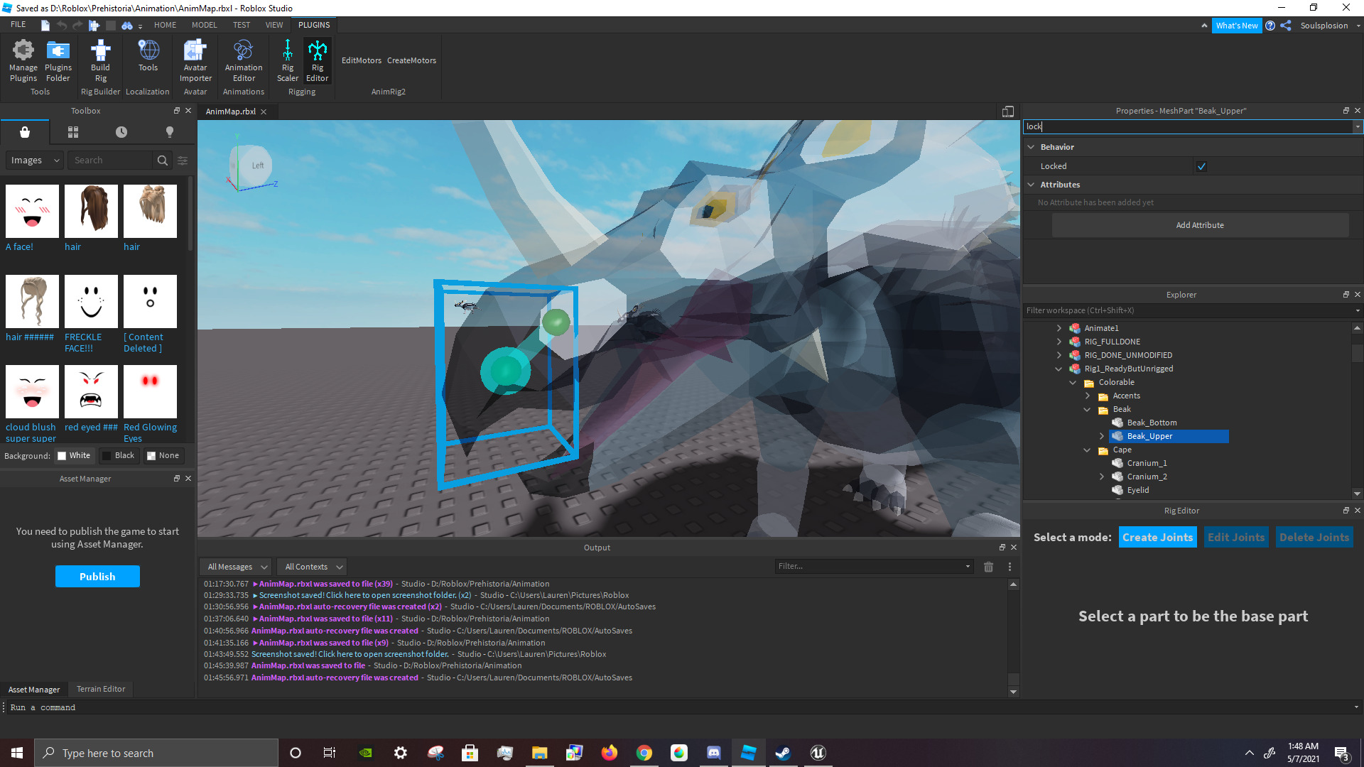 Here’s me testing with “beak_upper”, it’s the only part of the model that’s Locked but my rig editor can still click on it