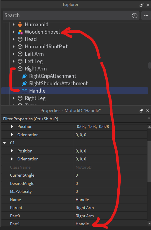self.Motor6D = CreateMotor6D(character["Right Arm"],self.Model.PrimaryPart,"Handle")