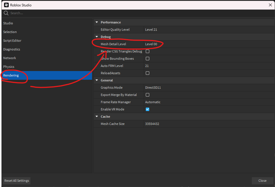 Can you ensure that the Mesh Detail Level setting for your studio is set to Level 00?
