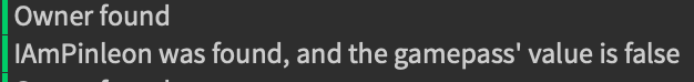 print(player.Name.." was found, and the gamepass' value is true")