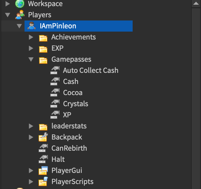 player:FindFirstChild(“Gamepasses”)
