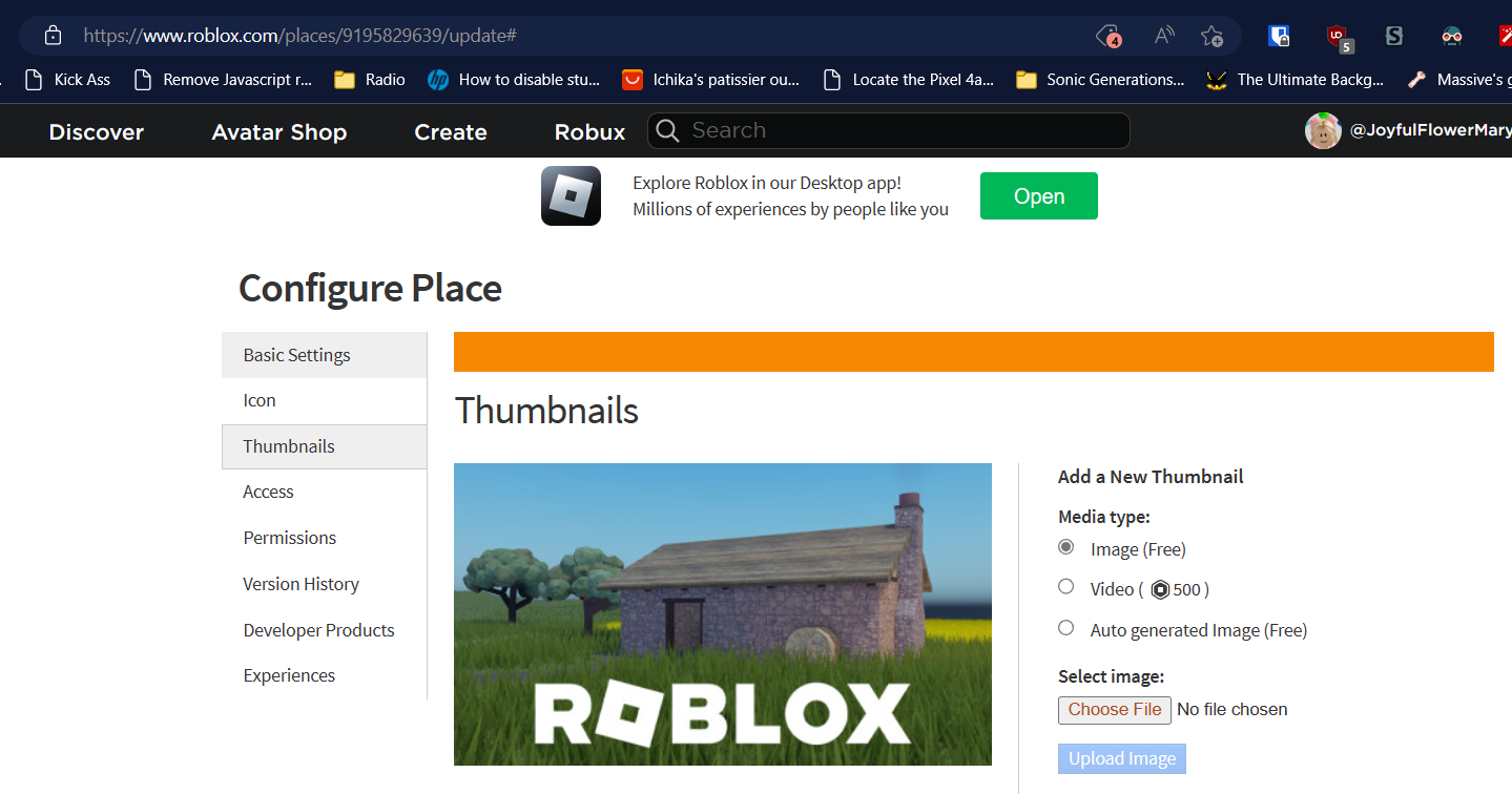With my current places, their unique thumbnails make it very easy to tell them apart. If Roblox doesn’t bring back the ability to customize place-specific thumbnails (and icons), any new places will use the default “ROBLOX” thumbnails, which blend together and aren’t as memorable as my thumbnails.