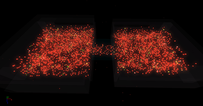 I’ve been running the same exact simulation from my previous post about putting all the particles in the same container. Here’s a comparison from now and then: