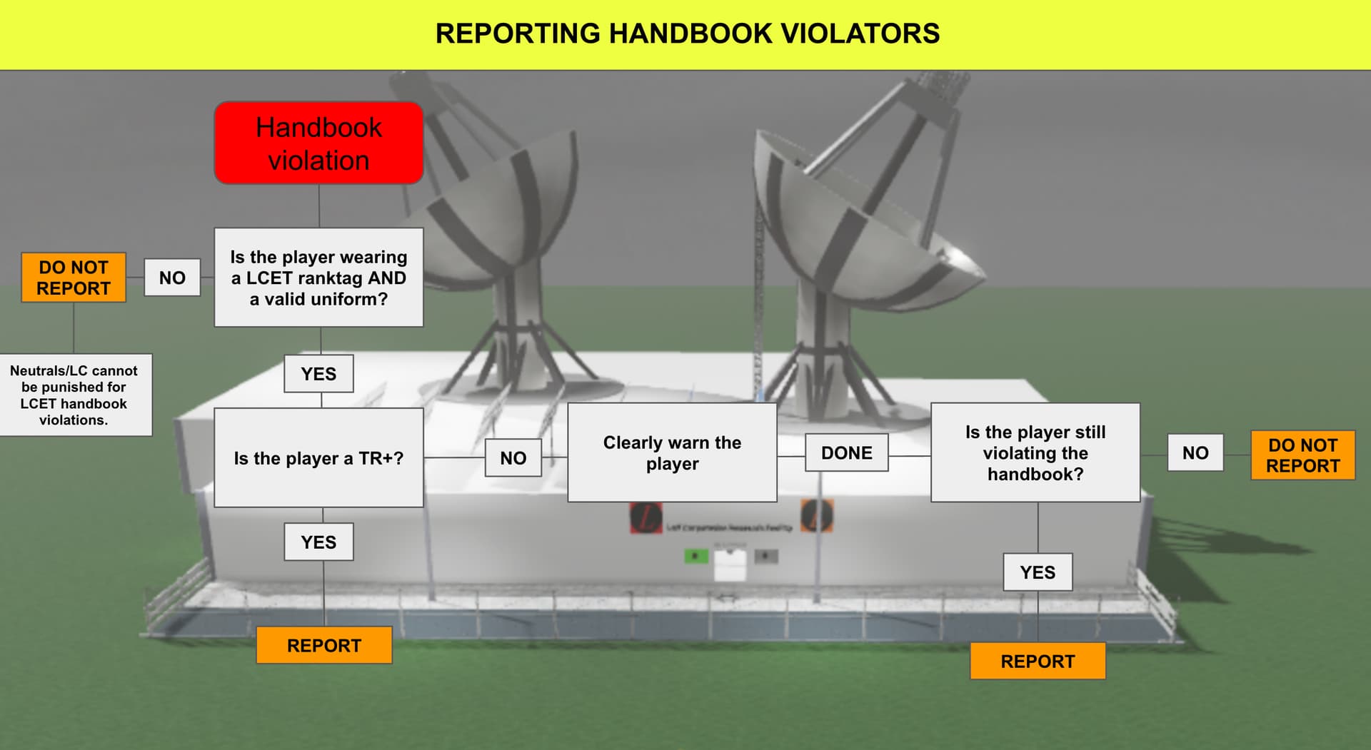 - Any individual with just one of these requirements is not on-duty for LCET and is considered a neutral person. Do not harass visitors about getting a uniform/ranktag in order to be on-duty for LCET.