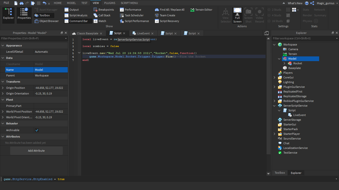 liveEvent.new(“Wed Jul 28 14:02:22 2021”,“Bomb”,true,function()