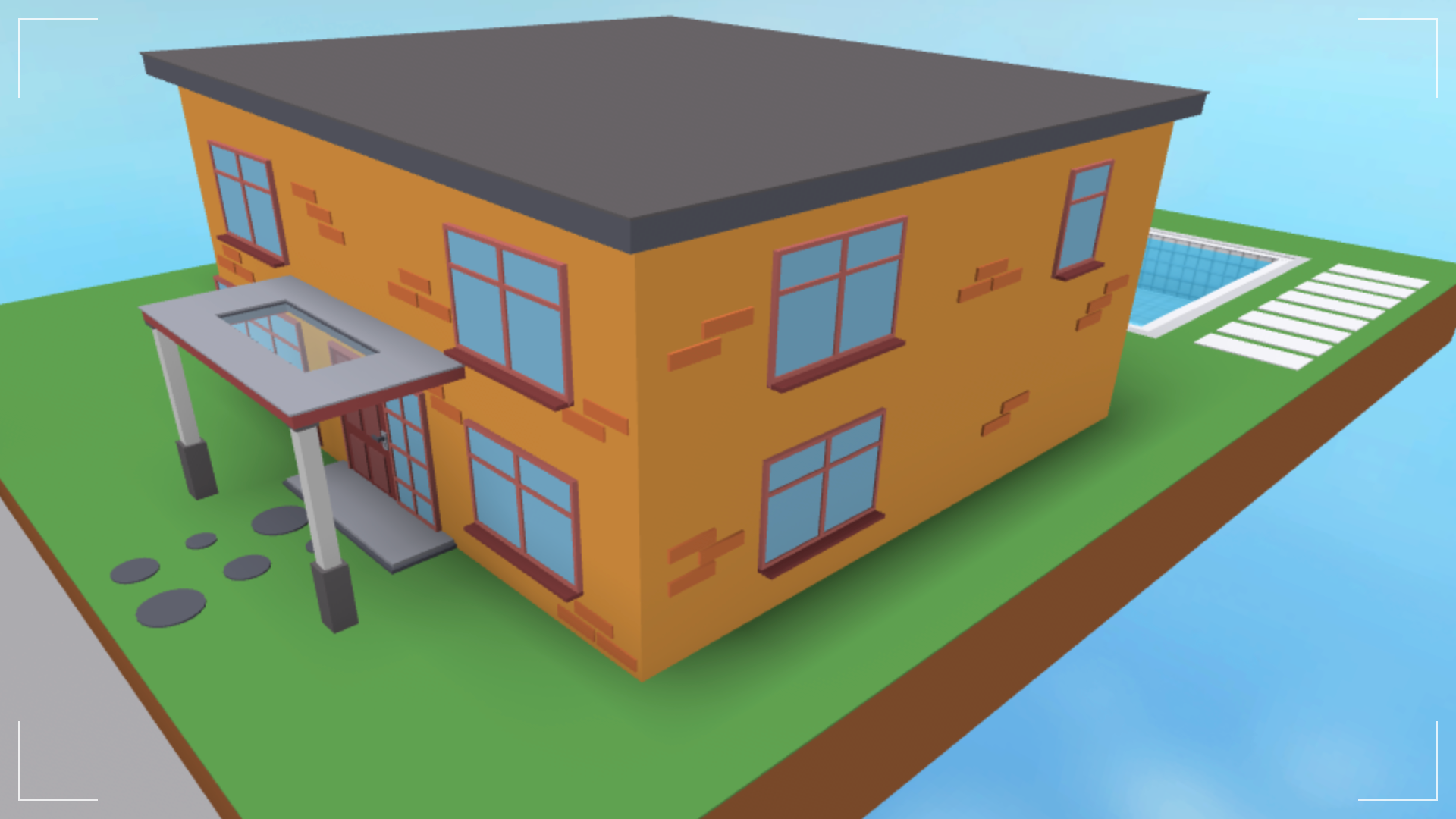 Now that the building part is almost done, I would focus on how you want it to look like. Add some trees, plants, bushes, driveway, fence, probably a car etc. Some nature would be nice too, in the form of flowers, garden, those kind of stuff I would try adding an actual sidewalk, you should try adding the little circles placed inside the sidewalk, I think that would add a better design to it if you don’t understand what I’m talking about I’ll leave an image below.