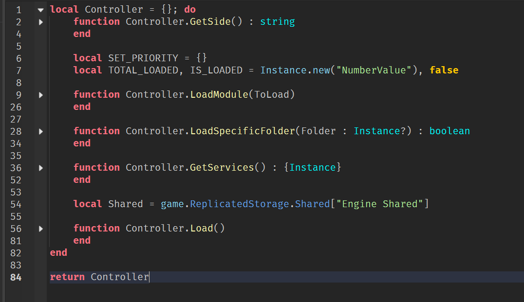 Hi there! I don’t really save much time by doing that, but it looks cleaner since i don’t have a bunch of services in all of my scripts, only 1 clean module instead. I remember type checker working properly with my Engine module for some time before, i could use autocompletion to access services and everything worked correctly. ~2 weeks ago it broke completely, but this time i can’t even access functions in module scripts which i believe, is way more important than my services issue. Thank you for your help!