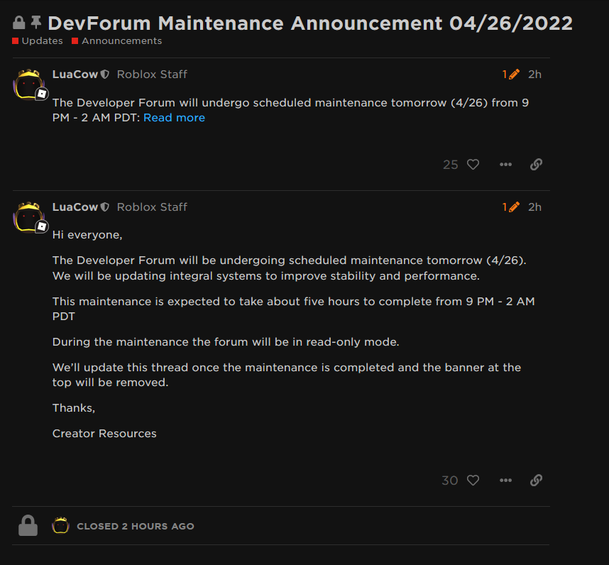 The site is undergoing scheduled maintenance and is in read-only mode: Read more