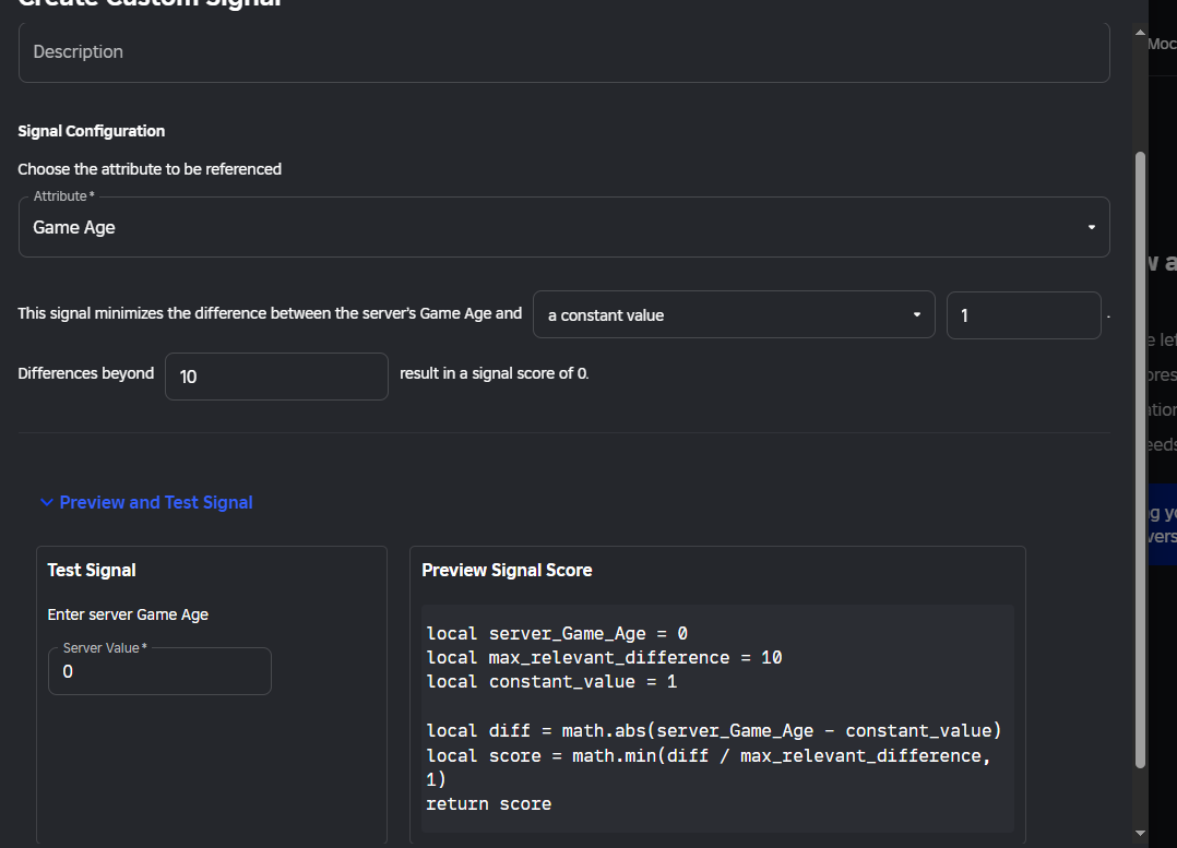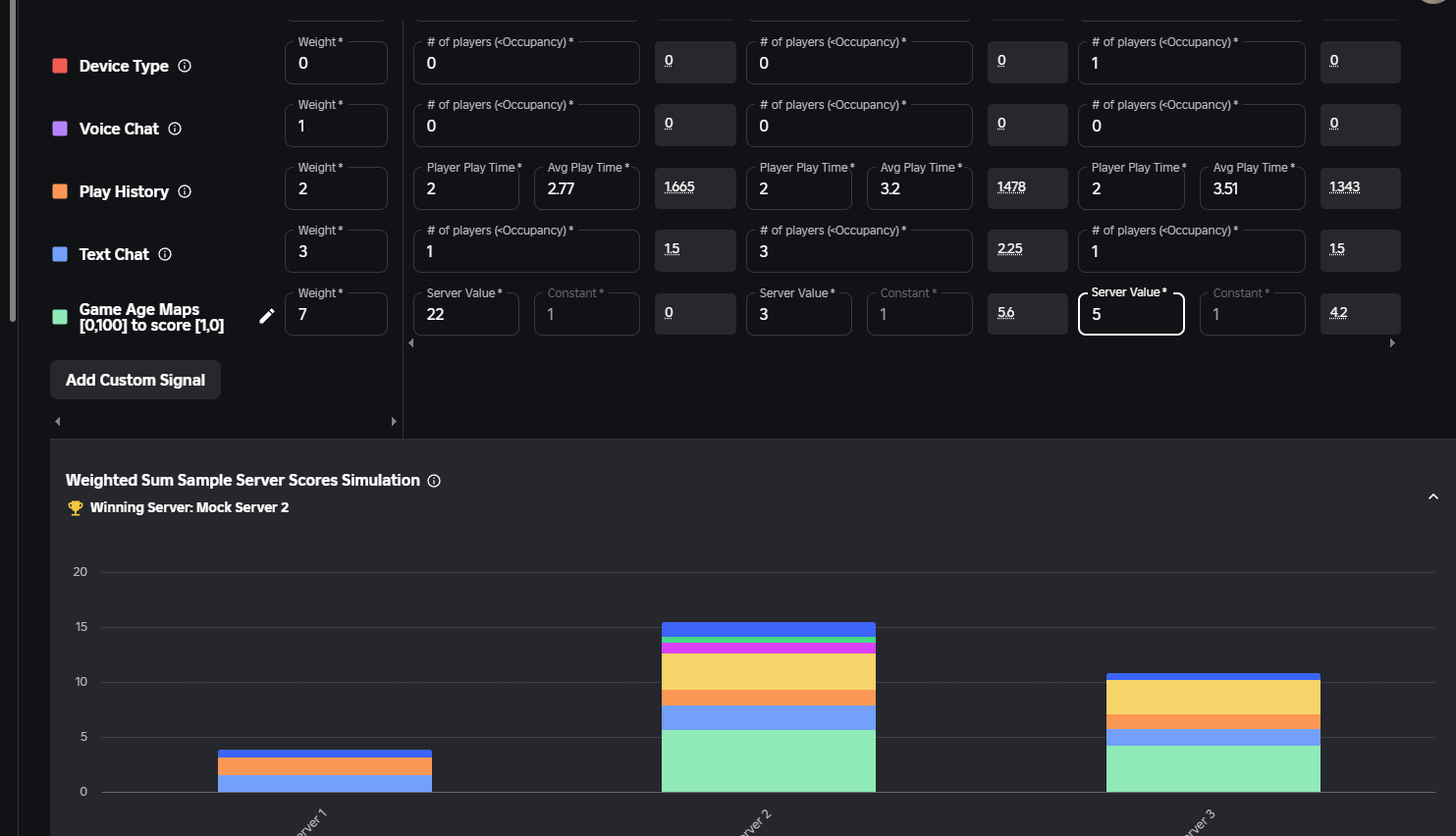So i am trying to custom matchmake people in servers where the round just started, i added a custom attribute to the servers called “Game Age” in minutes, and then i set to minimize the difference between 1 and differences beyond 10 to be zero, so the servers with less