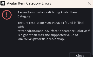 when uploading a clothing item I have been making. I first got the error yesterday even though I haven’t changed the texture and it didn’t cause any errors for a long time before this.