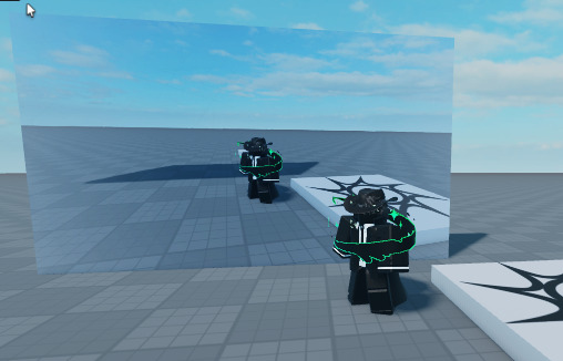 You’re nearly done: Clone the “mirror part” from the first step, and parent it to the new viewport from the last step. I’ll refer to this part as the “Inner part”. For clarity, rename it to “InnerPart” Also add a LocalScript into the viewport. I recommend setting the position of the “Inner part” to 0, 0, 0: