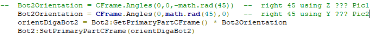 -- local Bot2ApplyRotationCFrame = CFrame.Angles(0,math.rad(45),0) -- right 45 using Y ??? Pic2